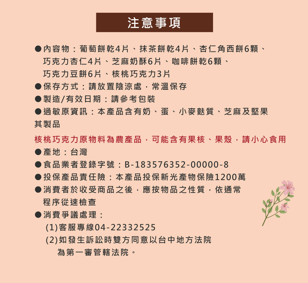※「桃桃酥」產品原物料為農產品,可能含有果核、果殼或葡萄梗,請小心食用。