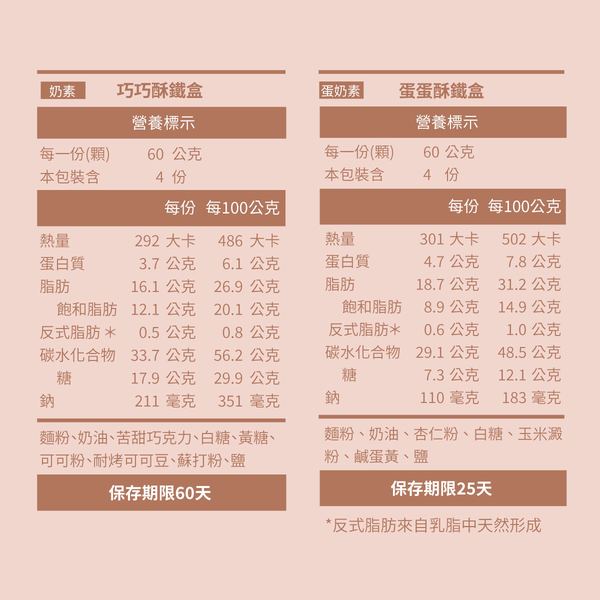 ※除巧巧酥為奶素,其餘品項皆為蛋奶素