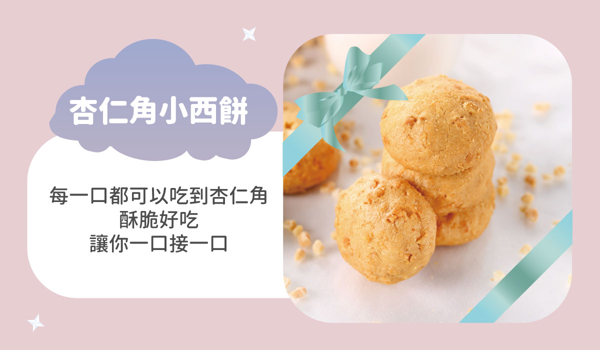 杏仁角西餅6顆、巧克力杏仁4片