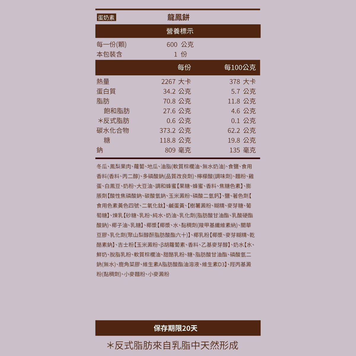 大餅重量:一斤(600g)大餅口味:鳳梨醬加奶皇鹹蛋保存期限:大餅到您手上至少還有10天-----------------禮盒尺寸:21.5cm x 21.5cm x 4.5cm禮盒皆附提袋