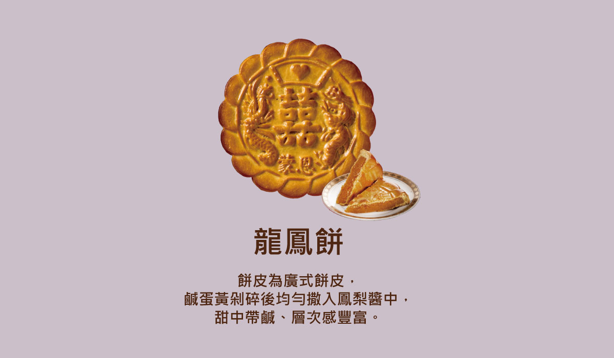餅皮為廣式餅皮鹹蛋黃剁碎後均勻撒入鳳梨醬中,甜中帶鹹、層次感豐富。