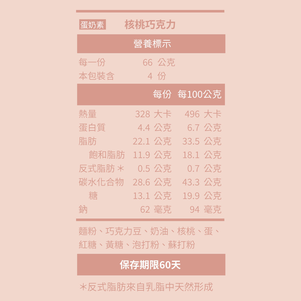 一、本產品為蛋奶素二、本產品原物料為農產品,可能含有果核、果殼,請小心食用。
