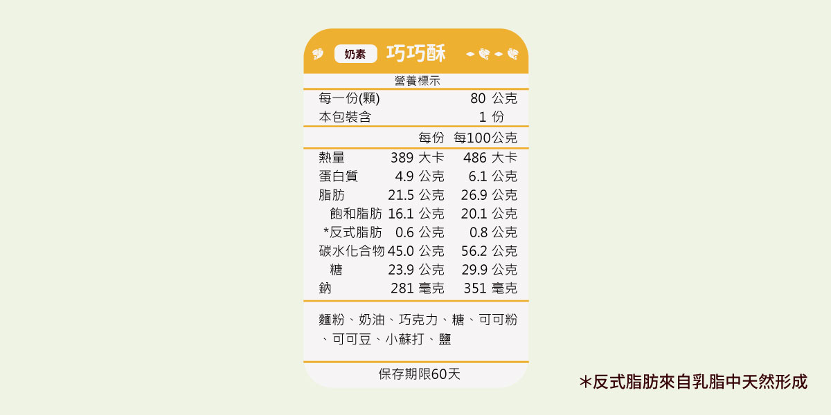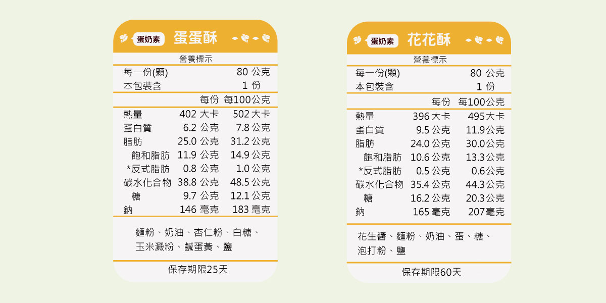 *除巧巧酥為奶素,其餘品項皆為蛋奶素*