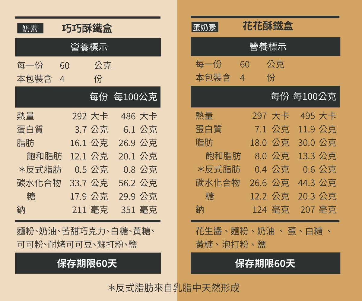 本產品巧巧酥為奶素、花花酥為蛋奶素