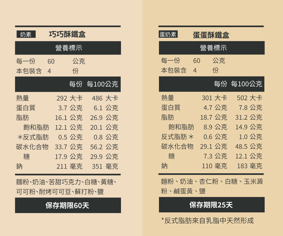 本產品巧巧酥為奶素、蛋蛋酥為蛋奶素
