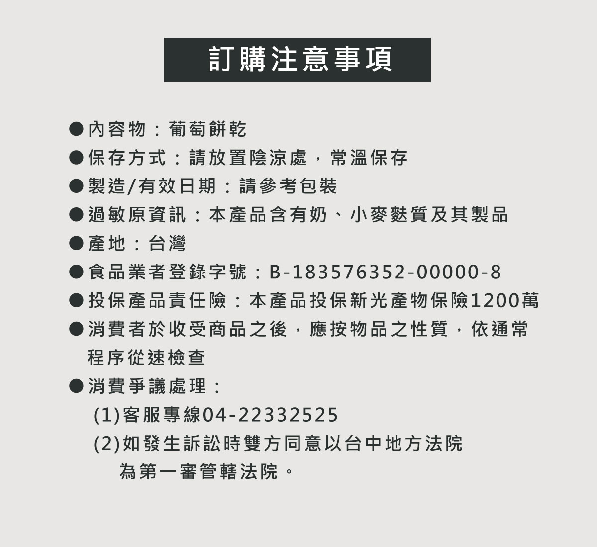 餅乾數量:葡萄餅乾4片保存期限:到您手上至少還有40天包裝尺寸:10.3cm x 10.3cm x 5cm