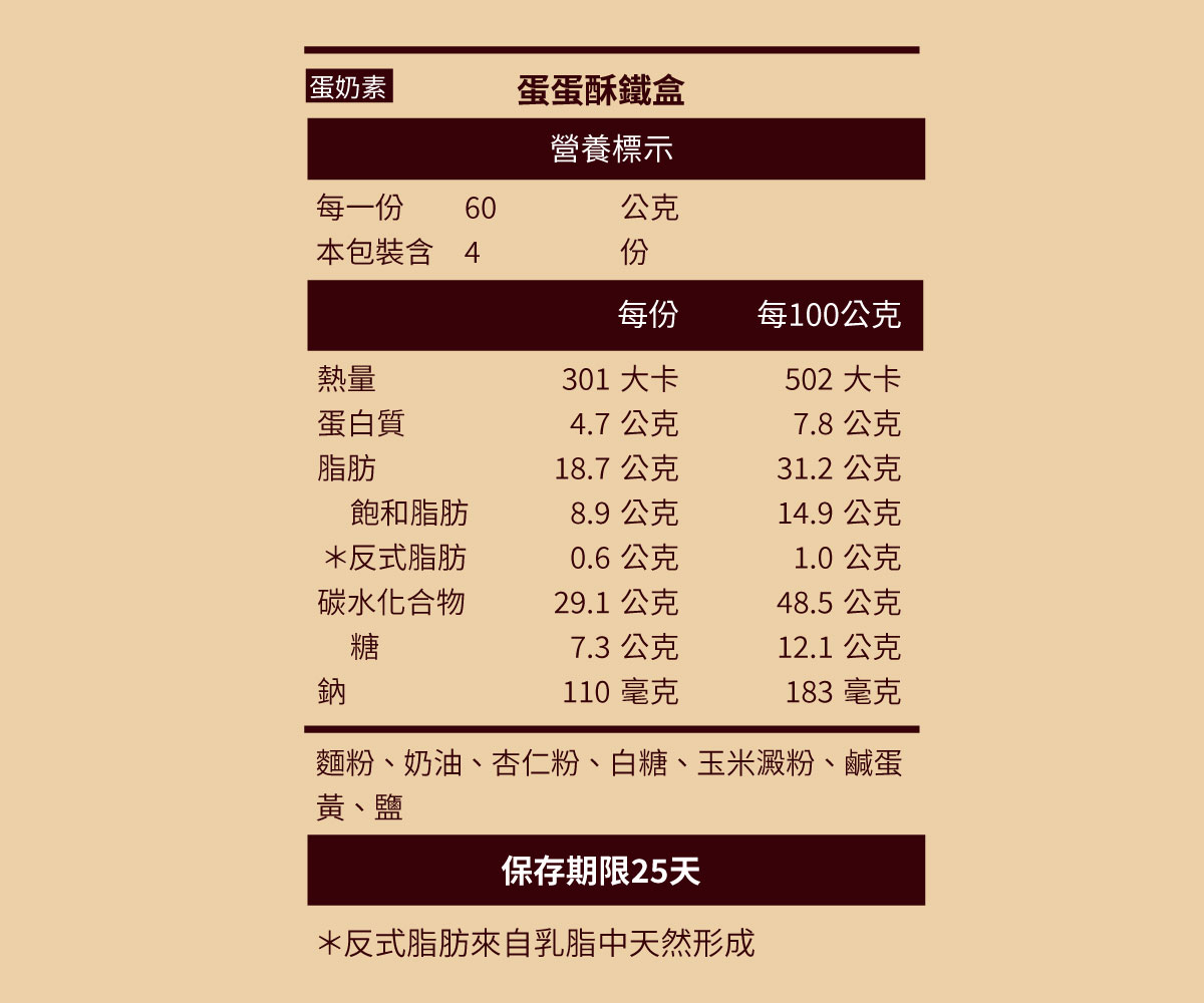 餅乾淨重:240公克餅乾數量:約20-24顆不等(因每顆餅乾重量不同)保存期限:到您手上至少還有15天-----------------鐵盒尺寸:直徑15.5cm x 高5cm提袋尺寸:長17cm x 寬16.5cm x 高13.5cm禮盒皆附提袋