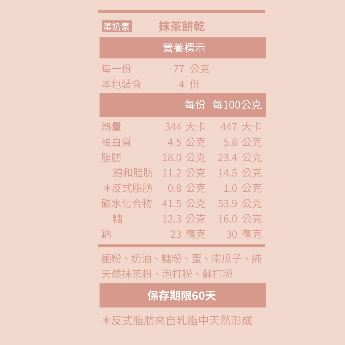 本產品為蛋奶素