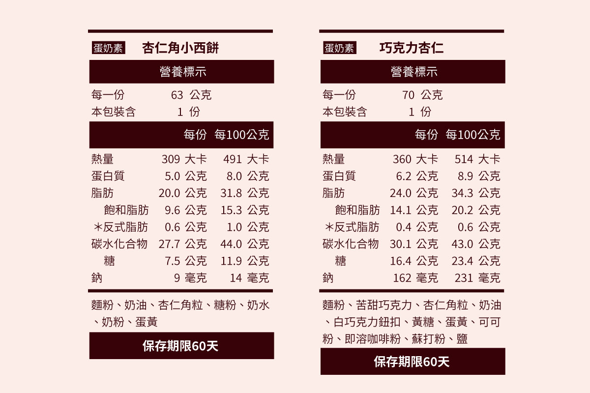 ※「桃桃酥」、「核桃巧克力」產品原物料為農產品,可能含用果核、果殼或葡萄梗,請小心食用。