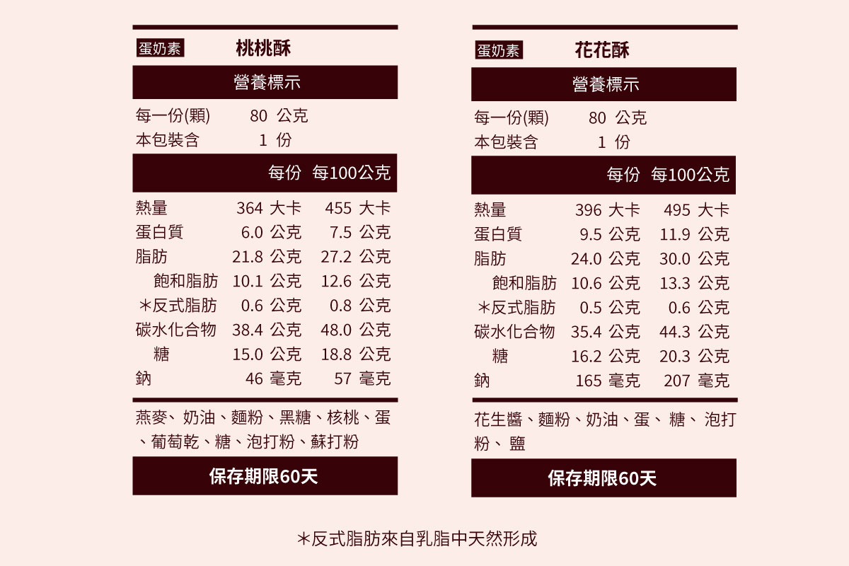 ※「桃桃酥」產品原物料為農產品,可能含有果核、果殼或葡萄梗,請小心食用。